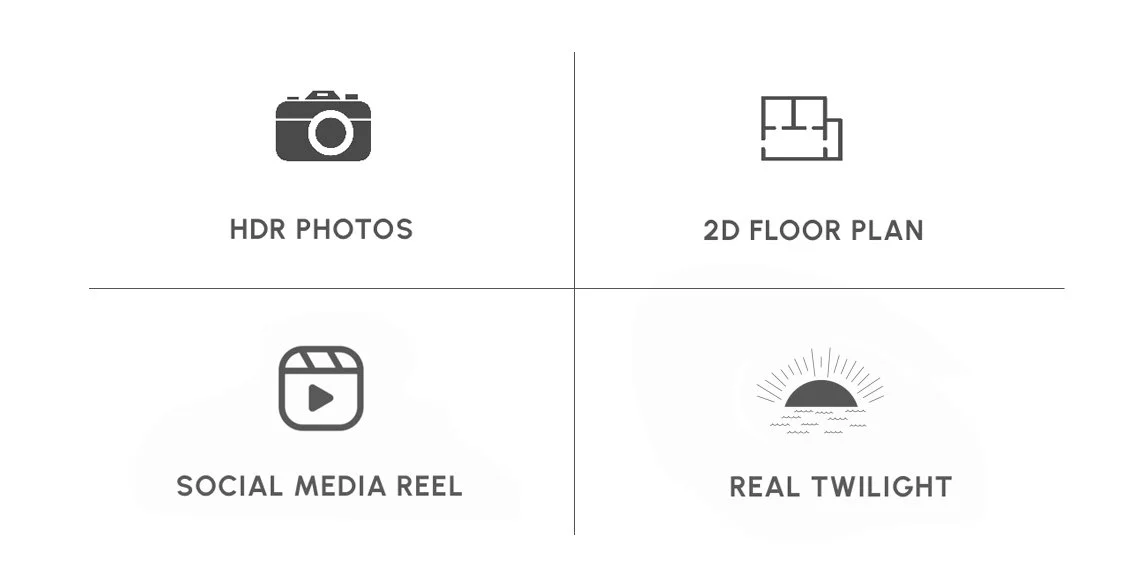 You can select only what you need — whether that’s standard HDR photography, elevated flambient lighting for premium listings, twilight imagery, or short-form video.